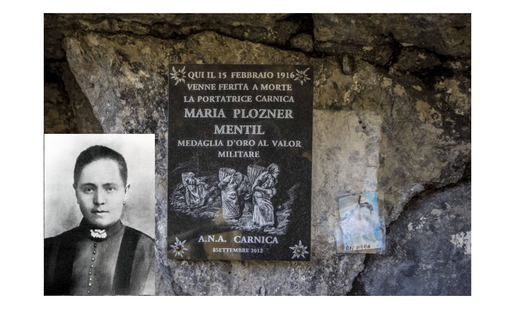 Maria Plozner fu donna eccezionale. Era molto benvoluta sia per la bontà d'animo che per lo spirito d'altruismo. Si può dire che delle portatrici fu l'anima e la guida trascinatrice. Era sempre in prima fila, in tutte le circostanze. Durante i bombardamenti delle artiglierie austriache e quando fischiavano le pallottole, era lei che infondeva coraggio alle compagne in preda a comprensibili paure e smarrimenti. Questa donna, questa madre esemplare e coraggiosa, il 15 febbraio 1916 cadde, colpita a morte, a Malpasso di Pramosio, sopra Timau. Un cecchino austriaco, appostato a circa trecento metri, le aveva sparato mentre, unitamente alla sua inseparabile amica Rosalia di Cleulis, stava concedendosi un breve riposo dopo aver scaricato dalla gerla un pesante carico di munizioni. Nella notte dello stesso giorno spirò nell'ospedaletto da campo di Paluzza, assistita da uno zio trovandosi il marito combattente sul Carso. Aveva trentadue anni. I funerali furono celebrati con gli onori militari alla presenza delle compagne portatrici e dei parenti. Fu seppellita nel cimitero di Paluzza dove rimase sino al 3 giugno 1934, allorché venne solennemente traslata al cimitero di guerra di Timau da dove, nel 1937, venne trasferita definitivamente nel locale Tempio Ossario, accanto ai resti di 1.763 caduti sul sovrastante fronte. Lasciò quattro creature in tenera età: la più grande aveva 10 anni, la più piccola appena sei mesi. Il 1° ottobre 1997, davanti al tempio dei caduti di Timau, il Presidente della Repubblica Oscar Luigi Scalfaro ha conferito, "MOTU PROPRIO", la medaglia d'oro al valor militare alla memoria dell'Eroina Maria Plozner Mentil quale ideale rappresentante di tutte le portatrici.